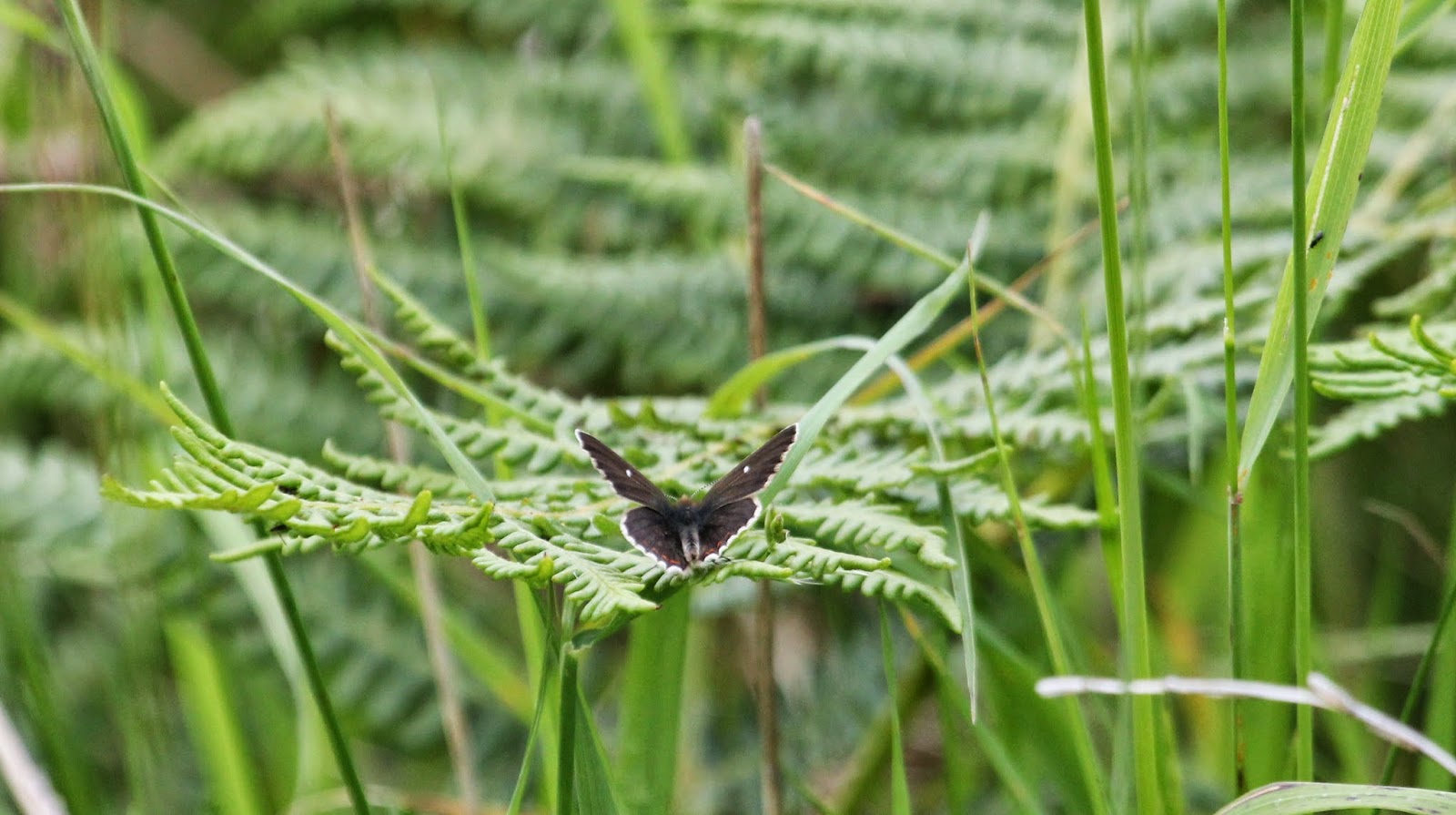 There were also Small Heaths and Green-veined Whites seen, but biggest surprise of the day was a Hummingbird Hawk-moth which Kenny ran into while trying to get a NBA photo. It did manage to hang around enough for a couple of shaky photo opportunities before departing but it never settled. (It has been suggested that this is an ovipositing female, with the food plant being Lady's Bedstraw. Sounds reasonable)